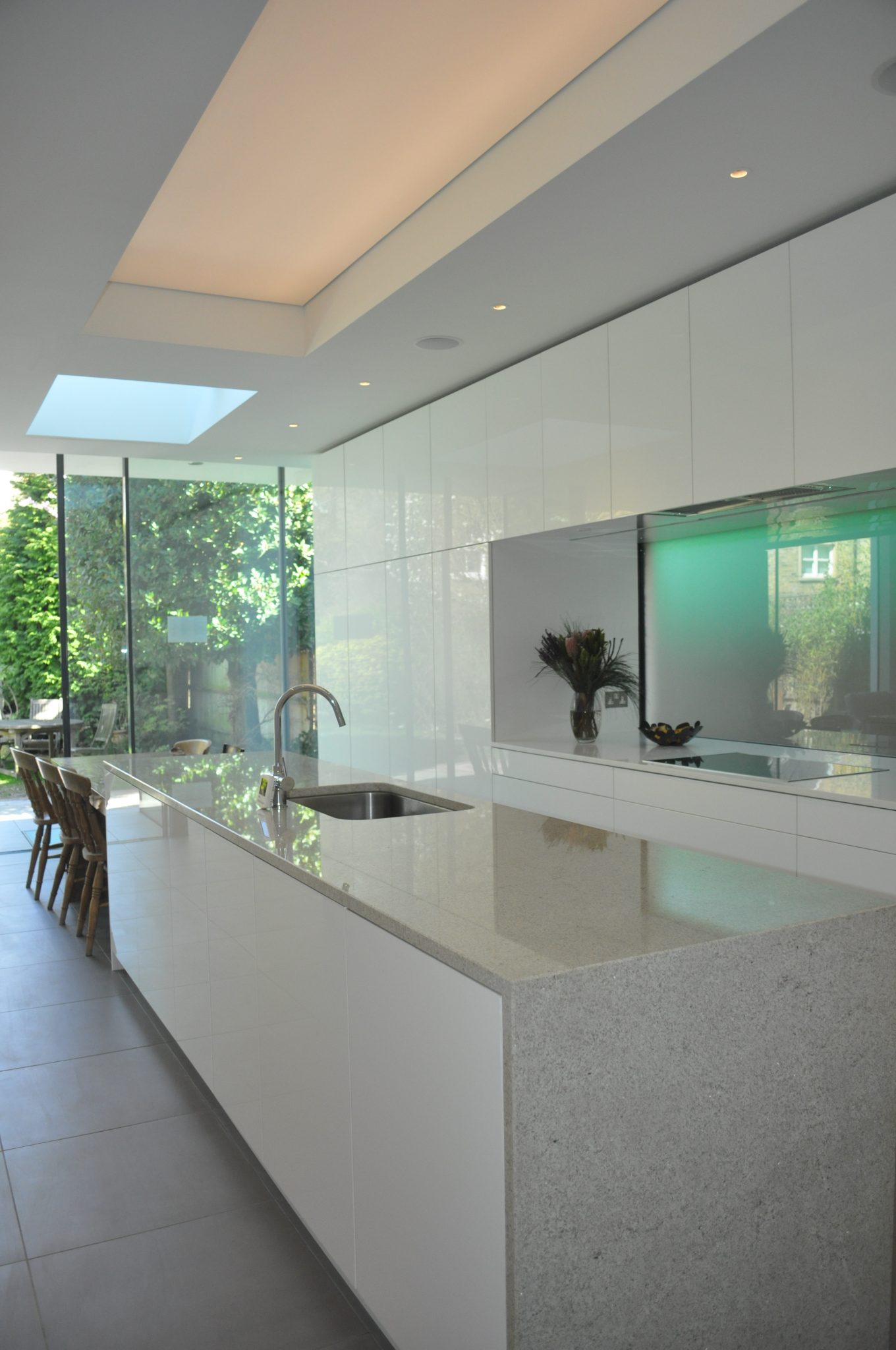 This home was transformed with the addition of a glass corner kitchen extension, completely opening up the rear of the property to the garden. The rooms were opened up, to connect them to each other and to create lovely through views to the garden.