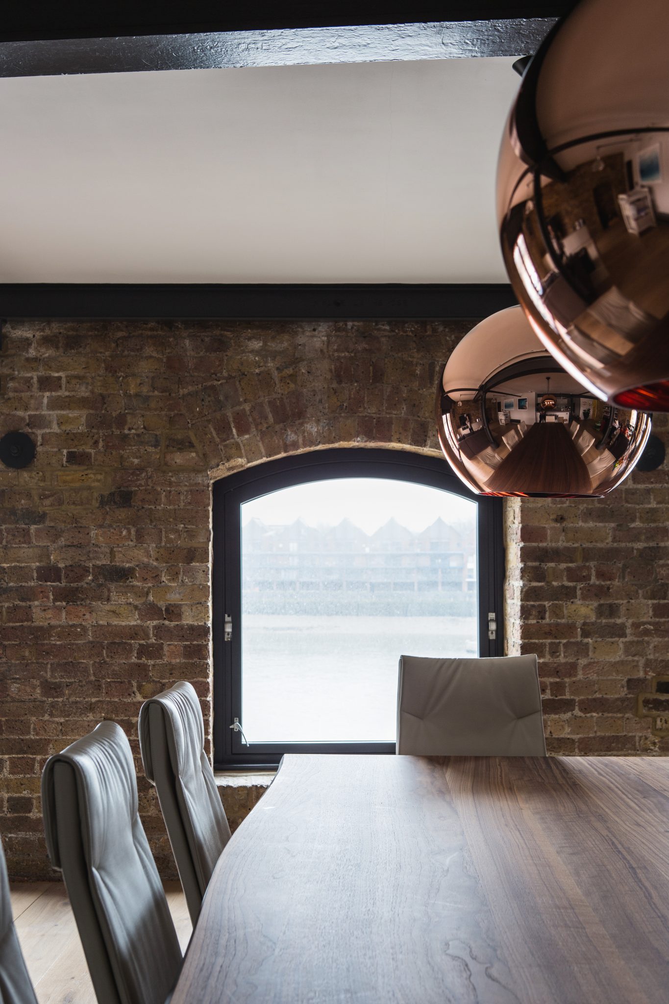Conversion of a riverside warehouse to create a contemporary 3 bedroom home. The design celebrates the rich character of the existing building, the wonderful brickwork and cast iron, together with the views over the Thames.